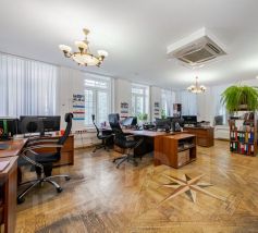 Кабинетная, смешанная планировка, имеются кабинеты руководства. 3 переговорных комнаты, с выходом на балкон .Есть собственная столовая с персоналом.