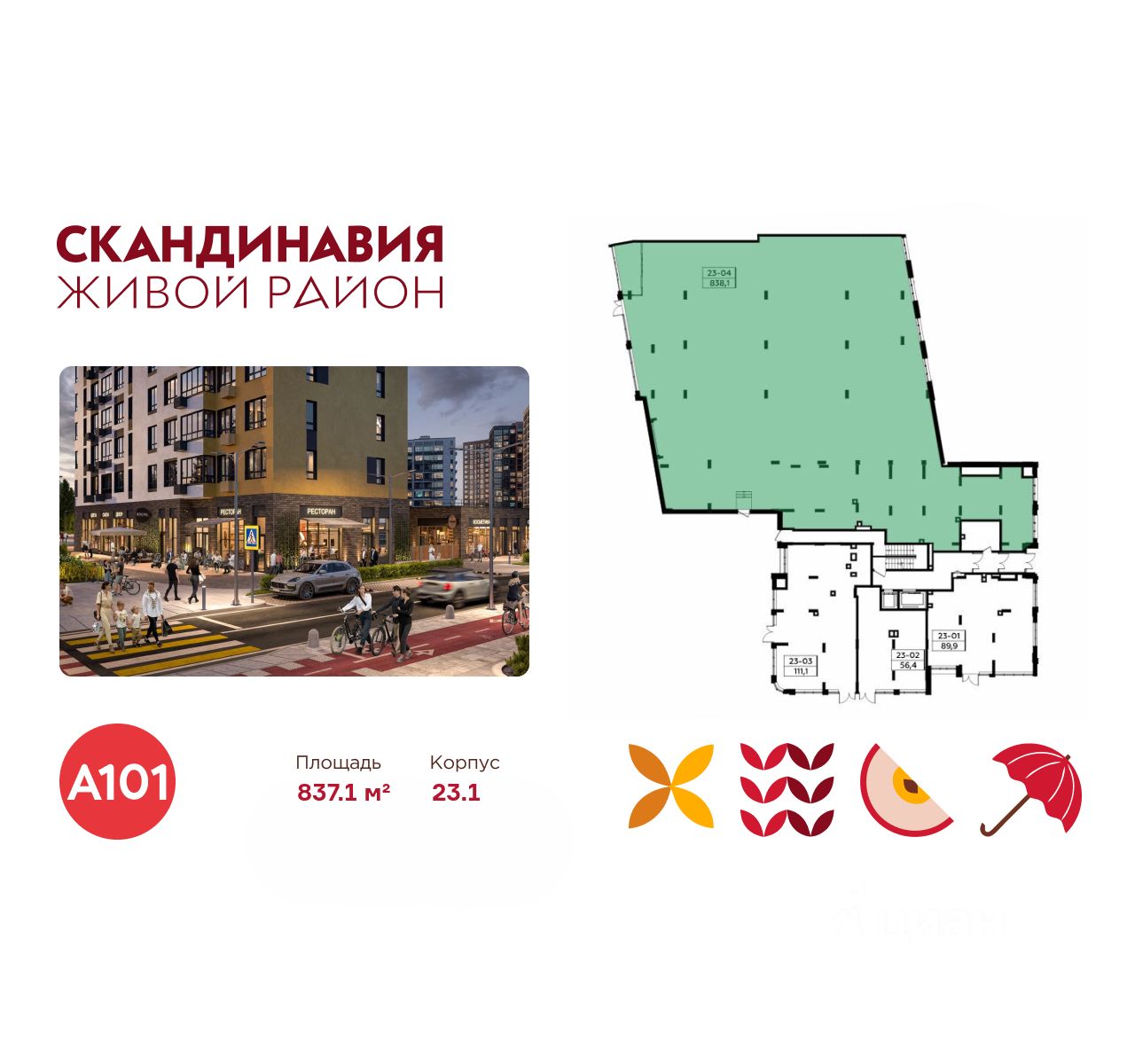 Сдается помещение площадью 837.10. на 1-м этаже ЖК "Скандинавия". Трафик 874 человек в день.