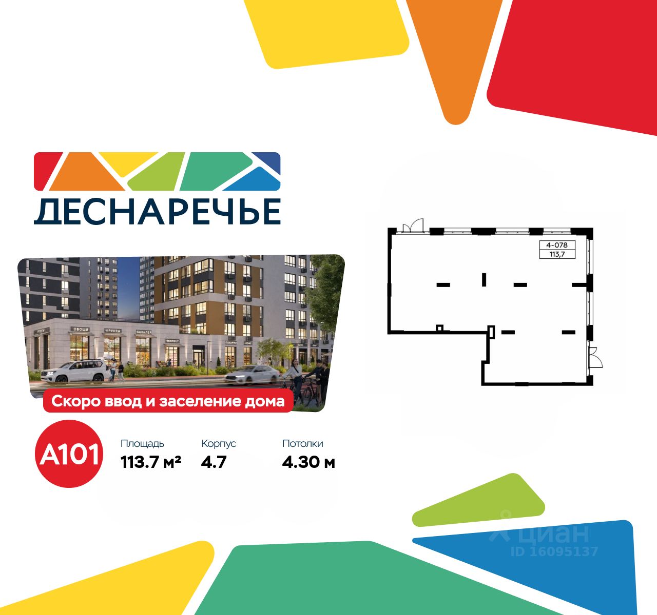 Сдается помещение площадью 113.70. на 1-м этаже ЖК "Деснаречье". Помещение находится в строящемся корпусе, срок сдачи IV квартал 2025 г.