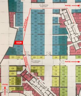 Специально брал у столба, а не у стены и не в углу, чтобы никто не перекрыл выход и свободно открывались двери. До западной башни 28 метров, до центральной 71, до восточной 110. План расположения показан на картинке.