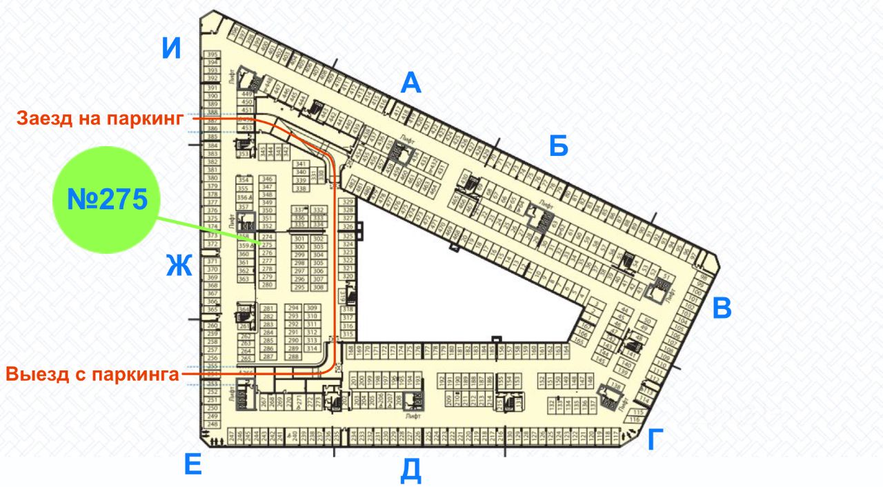 Добрый день! Сдаю машиноместо. Ближайший выход в секцию "Ж" (по паркингу можно выйти в любую секцию). Коммунальные платежи включены.