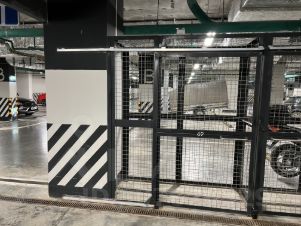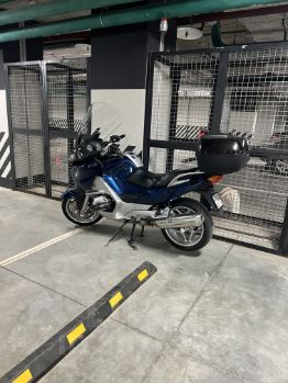 -мотоместо огорожено сеткой железной (на фото), если мотоцикл не влезет можно ставить рядом а в сетку что то складировать (на замке мотоместо)