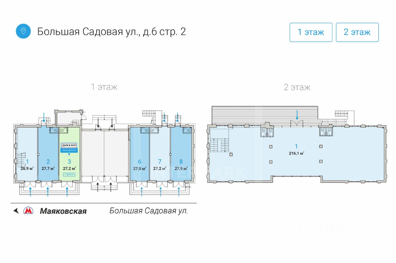 ID 3413. Аренда Street Retail помещений торгового или свободного назначения (ПСН) площадью от 27,0 до 243,0 кв.м на 1 и 2 этаже нежилого здания по адресу ул Большая Садовая д.6 стр.2 от метро Маяковская - 3 минуты пешком.