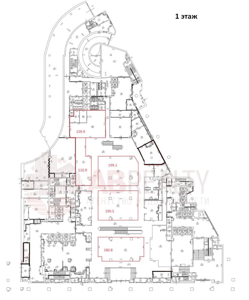 1 этаж. Торговая площадь 398,6 кв.м (199,1+199,5 см.план).
