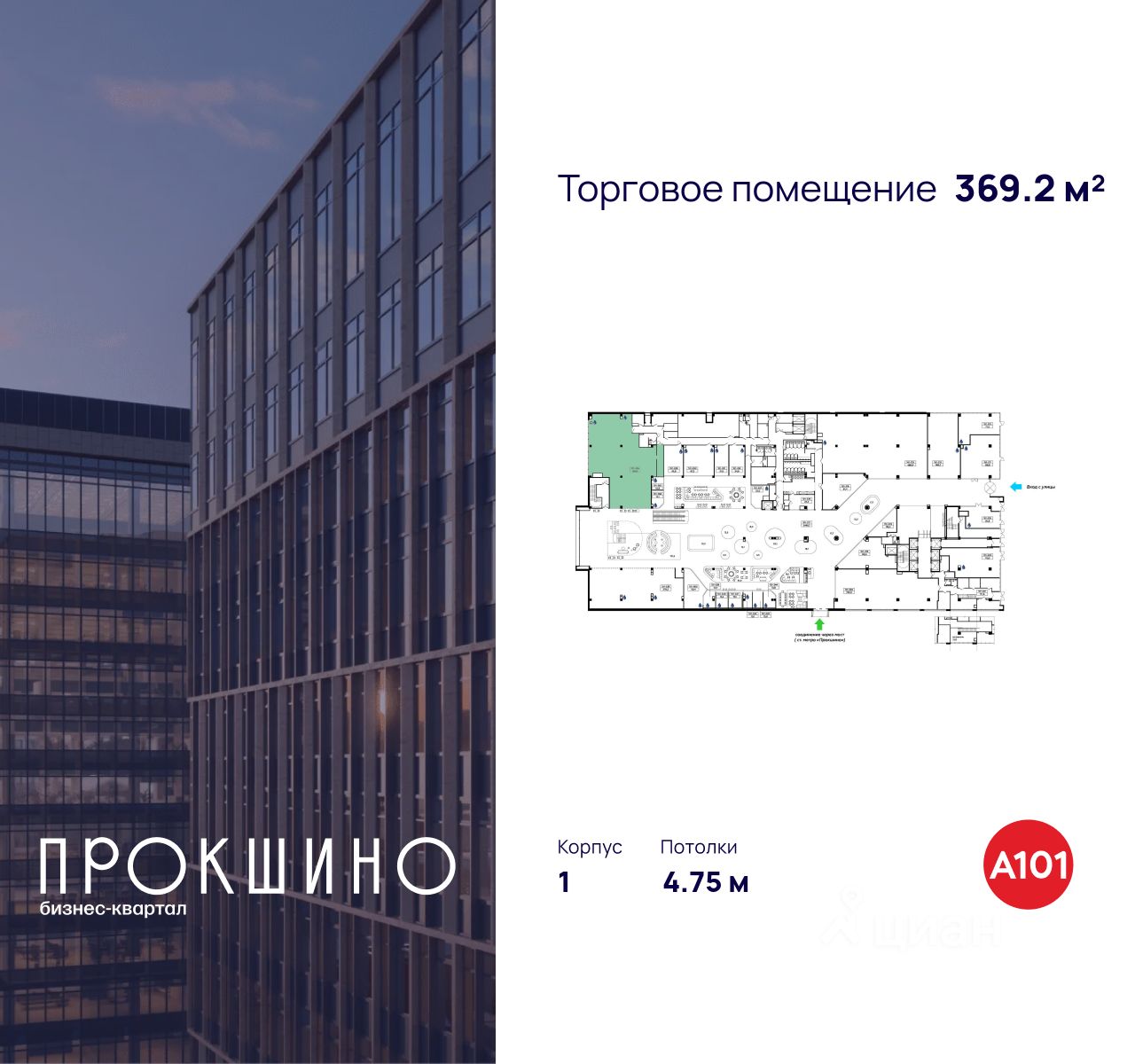 Сдаётся торговое помещение площадью 369.2 кв. м. в Бизнес-квартал "Прокшино". Без отделки. Высота потолков 4.75 м. Выделенная электрическая мощность — 120 кВт. Общий вход с улицы. Стоимость аренды помещения — 776 428 руб. в месяц . Способы оплаты и более подробная информация по телефону. Помещение свободного назначения в бизнес-квартале "Прокшино" на юго-западе Москвы в 1й минуте от метро "Прокшино".
