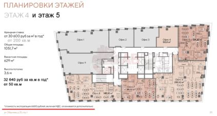 4 и 5 этажи - офисы от 50 кв.м БЕЗ отделки.
