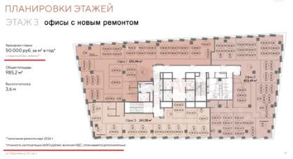 3 этаж офисы С Ремонтом 241,6/ 370,9/ 403,5/ 612/ 645/ 774/ целиком этаж 985 кв.м - заезд февраль-март 2026г.