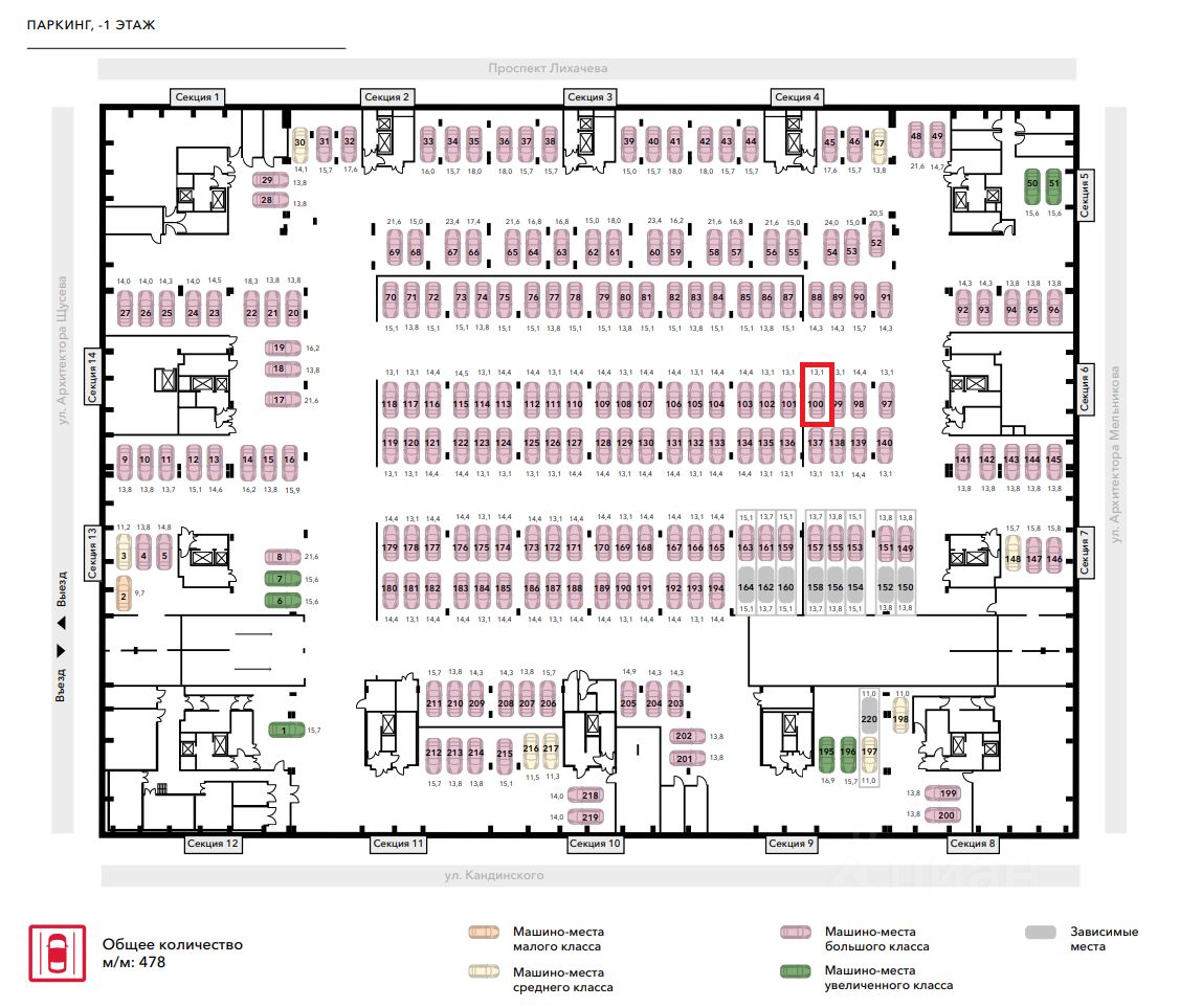 Машиноместо от собственника на -1 этаже, 100, 13.1 кв. м.