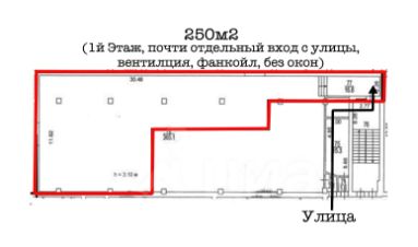 250м2 - свободная планировка, 1й этаж -Почти Отдельных вход с Улицы, возможно провести Мокрую точку, Приточная вентиляция, Вытяжка, Фанкойл, 590000р,