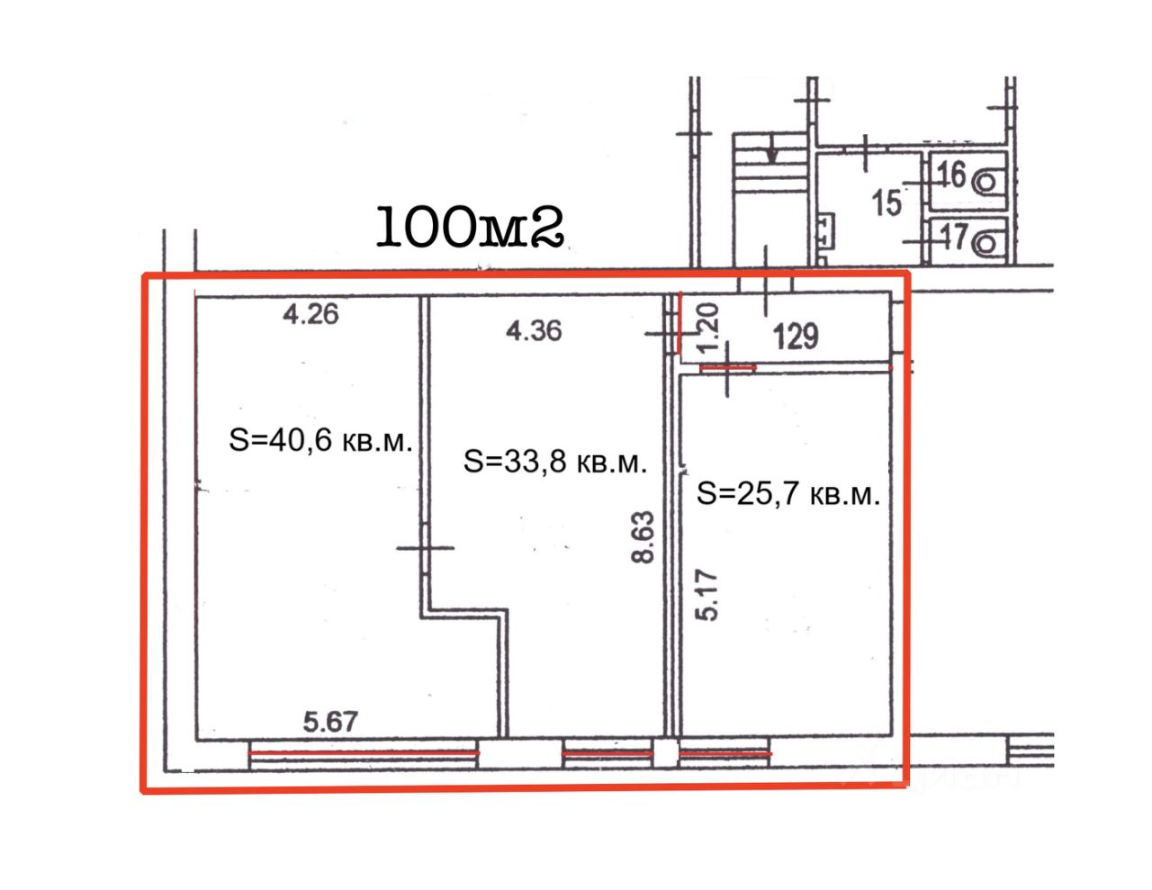 101,5м2 - свободная планировка, Большое Окно, Новый Ремонт, 253000р,
