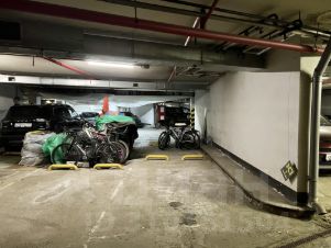 Машино-место в подземном паркинге уровень -2, спускаться/подниматься по лестнице (лифта нет). Вход в гараж с территории дома, территория под круглосуточной охраной.