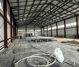 Лот 766434 Предложение от Собственника! Сдаётся в аренду новый отапливаемый склад площадью 868.5 м2. Готовность к сдаче 6 месяцев. Длина - 48 м, ширина - 18.24 м, свободная планировка без колонн! Двое больших ворот 3 на 4 м, отопление, высота потолков 7 м, естественное и электрическое освещение, бетонный пол, электрическая мощность 150 кВт, ХВС, огороженная территория.