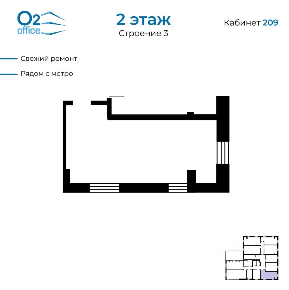 Территория бизнес-парка О2 office состоит из 4-х корпусов разной этажности класса В. Отличная транспортная и пешеходная доступность, удобное расположение вблизи ст. метро Царицыно (всего 5-7 мин. пешком).