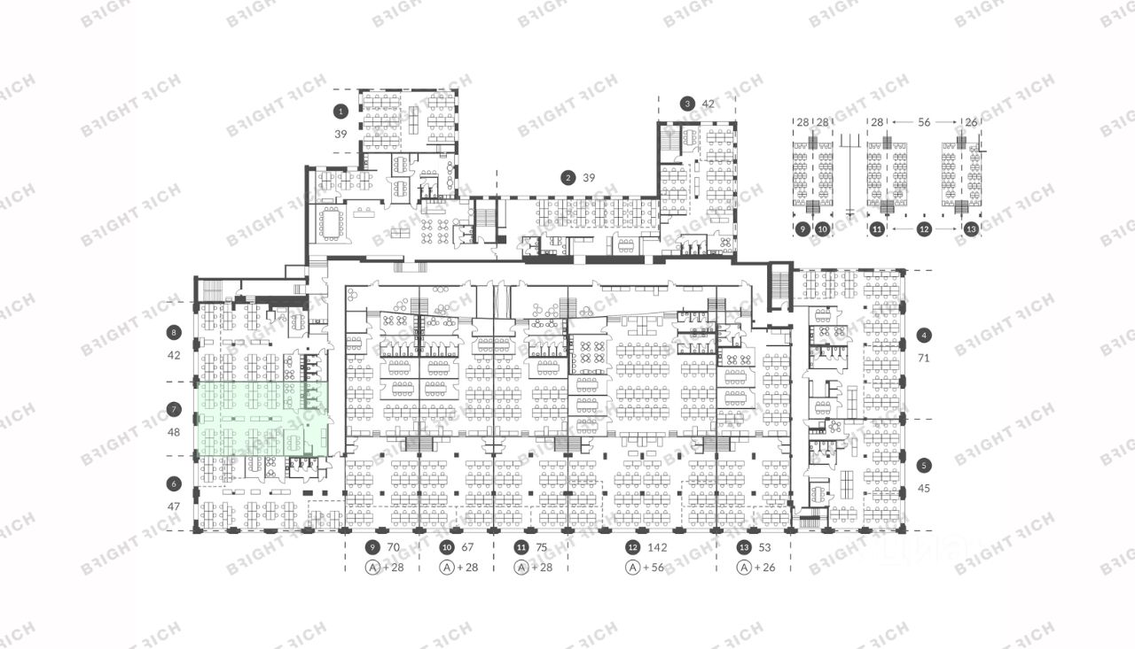 • современные офисы, отвечающие стандартам класса, функциональные планировки и инженерные решения;