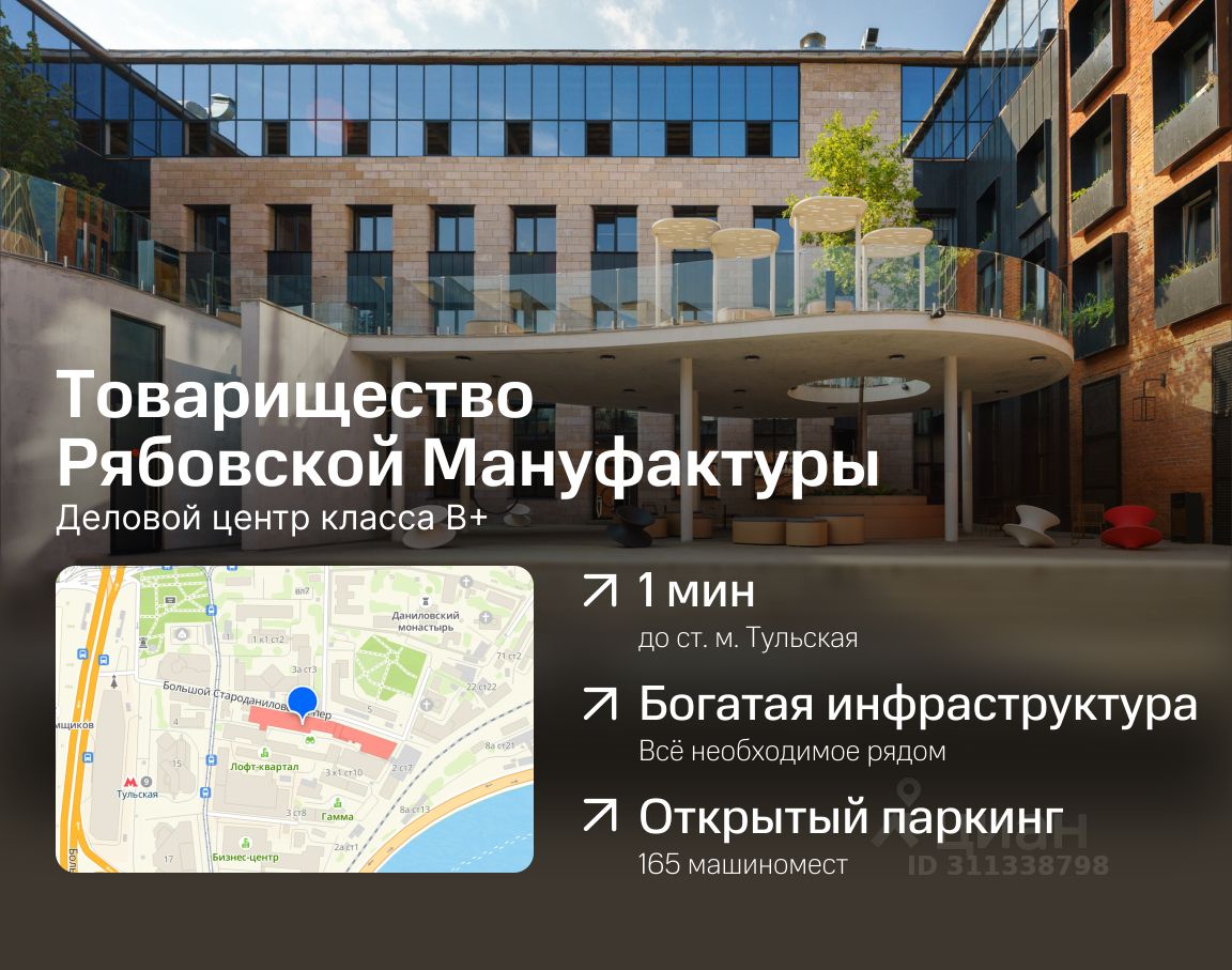 • прекрасное расположение, одна минута пешком от станции метро Тульская, деловая зона между Садовым кольцом и ТТК.