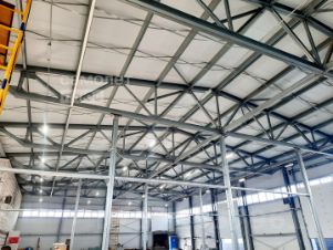 Площадь склада 1302 кв.м, размер: 48х29 м; площадь офиса 180 кв.м., в офисной части расположены: комната приема пищи, душевые, санузлы, гардероб.