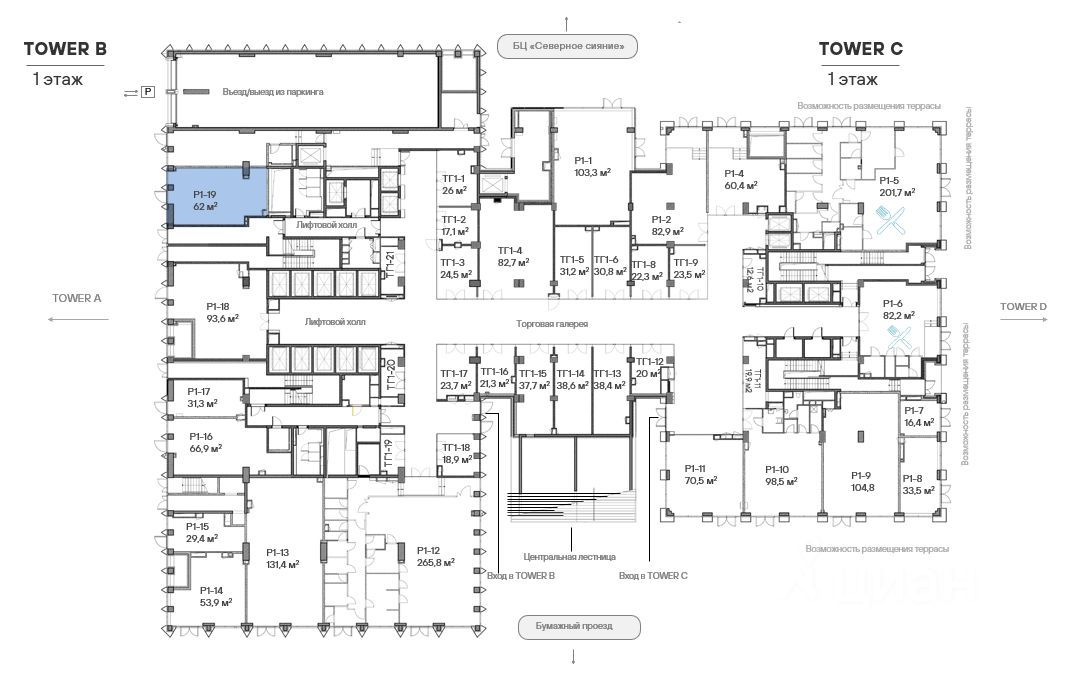 Аренда Торгового помещения на 1 этаже офисного квартала STONE Towers на 11 000 сотрудников. Высокий трафик обеспечен сотрудниками самого квартала, жителями района, а также соседних бизнес-центров.
