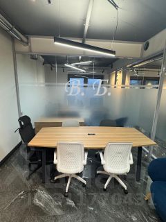 Сдается готовый офис в МФК "Сады Пекина" общей площадью 80 кв.м со стеклянной перегородкой делящей на две половины помещение.
