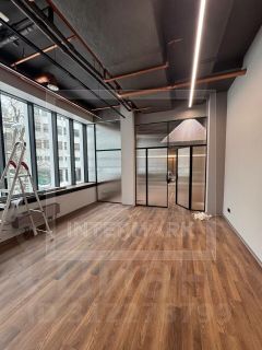 В офисе смешанная планировка, панорамное остекление по фасаду, высокие потолки 3,4 м, 2 входа, одна мокрая точка. Эл. мощность: 60 Вт на 1 кв.м. Сдается с отделкой. Также есть три машиноместа в подземном паркинге (оплачиваются отдельно).
