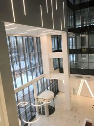 Здание оборудовано 2 грузовыми и 3 панорамными лифтами KONE.