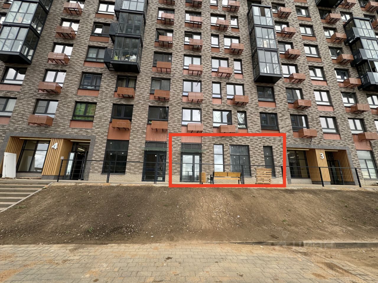 Помещение находиться между главной улицей ЖК и образовательным учреждением, что идеально подходит под стрит-ритейл.