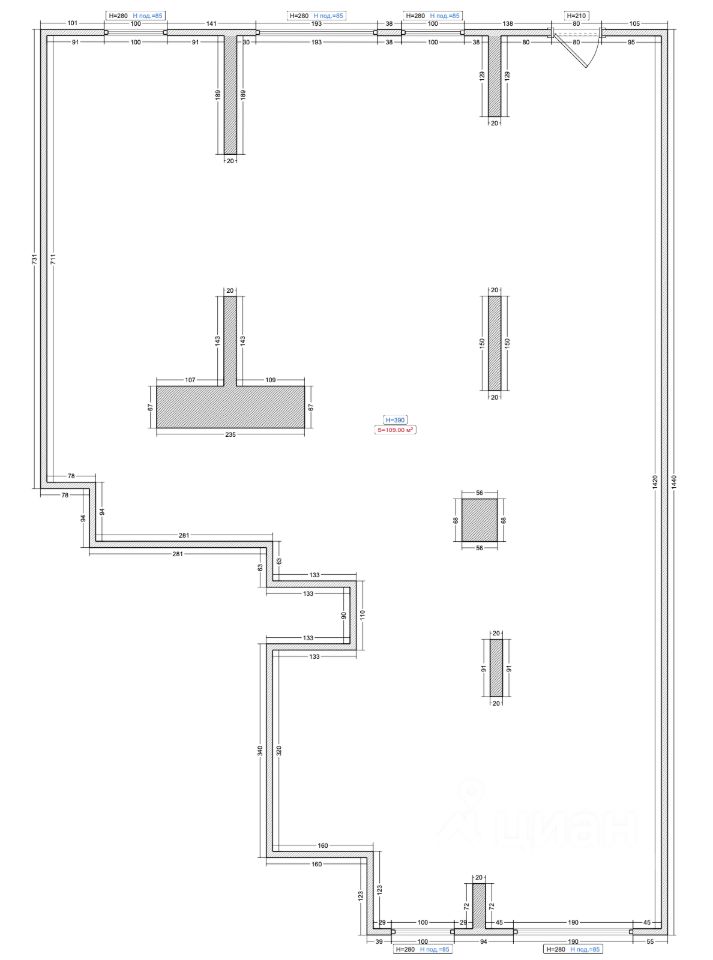 Площадь помещения 109м2