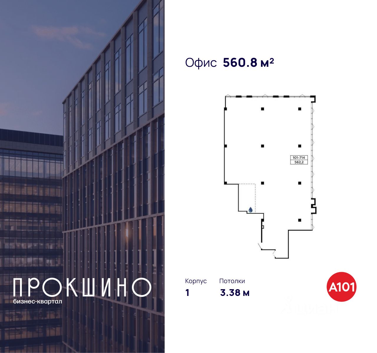 Сдаётся офисное помещение площадью 560.8 кв. м. в Бизнес-квартал "Прокшино". Без отделки. Окна с видом на улицу. Высота потолков 3.38 м. Выделенная электрическая мощность — 40 кВт. Отдельный вход с улицы. Стоимость аренды помещения — 1 121 600 руб. в месяц . Способы оплаты и более подробная информация по телефону. Офисное помещение в бизнес-квартале "Прокшино" на юго-западе Москвы в 1й минуте от метро "Прокшино".