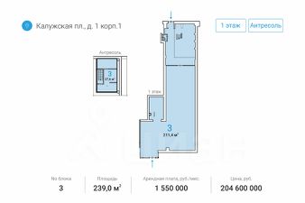 Отдельный вход c пepвoй линии. Мecтo для рaзмeщeния вывecки. Крупный сложившийся жилой район с высокой плотностью застройки и развитой инфраструктурой. В окружении находятся жилые комплексы "Cult", "Созвездие", большое количество бизнес-центров, Национальный исследовательский технологический университет МИСИС, Российская государственная детская библиотека.