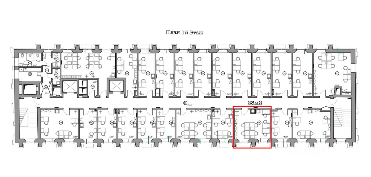 23м2 - отдельный кабинет, 6-7 рабочих мест, 1й этаж, 155000р + 22% НДС,