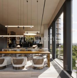 В помещениях нет отделки (состояние shell&core), смешанная планировка, центральная система кондиционирования и приточно-вытяжная система вентиляции. Панорамное остекление. В наличии подземная и наземная парковки.