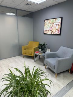 В кабинетах окна с дневным светом и кондиционированием, приточно-вытяжная вентиляция.
