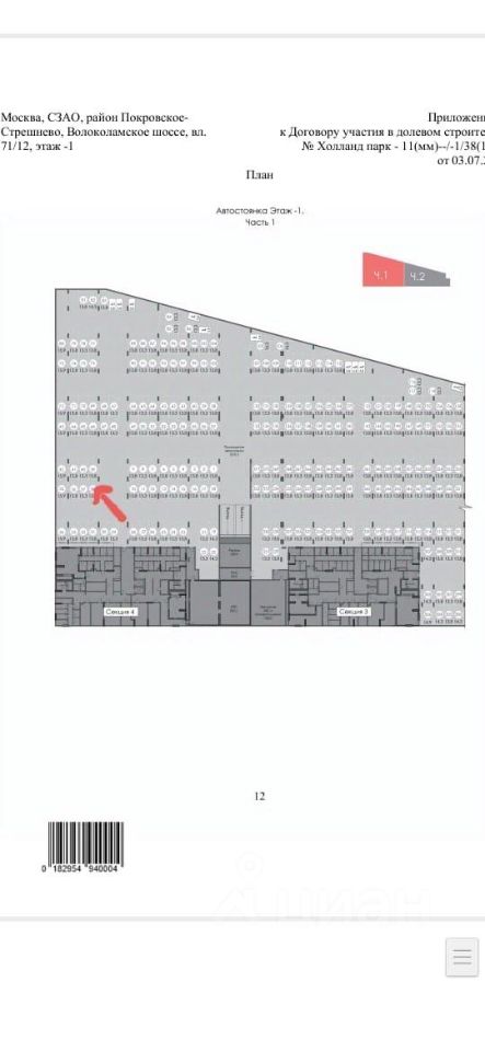 Находится под четвёртым подъездом, спускаетесь на лифте и через 10 метров наше машиноместо, очень удобно.
