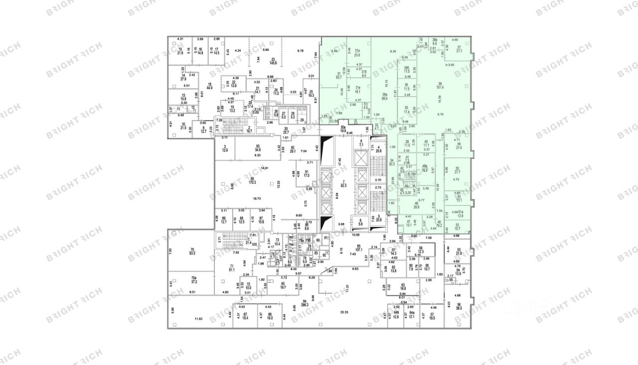• Планировка: open space, кабинеты, переговорные, кухня, с/у