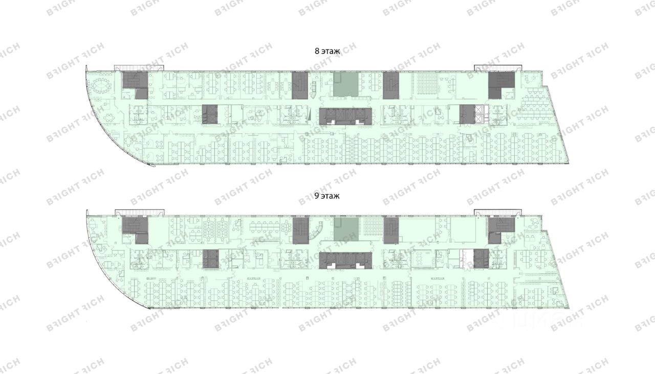 • Планировка: open space, кабинеты, переговорные, ресепшен, серверная, кухня, с/у