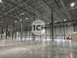 Высота потолков 12,5 метра, полы с антипылевым покрытием и нагрузкой 8 т. на кв.м.. Шаг колонн 18х24 м.