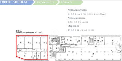 Бизнес-центр класса В+ "Авион". Расположен в районе Хорошевский, Северного округа Москвы. В шаговой доступности находится станция метро Аэропорт. Транспортную доступность обеспечивает непосредственная близость Ленинградского проспекта. В здании установлены современные инженерные системы: центральное кондиционирование, система пожарной безопасности, современные лифты. В ближайшем окружении развитая инфраструктура. Парковка наземная: 1 м/м на 200 кв.м. по 24000 рублей в месяц. Вакантные площади: 3-й этаж (стр.2) - 683 кв.м, кабинетная планировка, ставка - 40 000 рублей за кв.м в год. 4-й этаж (стр.2) - 1485 кв.м, кабинетная планировка, ставка - 50 000 рублей за кв.м в год. 5-й этаж (стр.2) - 295 кв.м, кабинетная планировка, ставка - 50 000 рублей за кв.м в год. 5-й этаж (стр.3) - 1450 кв.м, деление на 540 и 905 кв.м., кабинетная планировка, ставка - 50 000 рублей за кв.м в год. 6-й этаж (стр.3) - 490 кв.м, кабинетная планировка, ставка - 45 000 рублей за кв.м в год. Возможно арендовать вместе, в любой пропорции. Арендная ставка включает НДС и эксплуатационные расходы, коммуналка отдельно. Без комиссии.