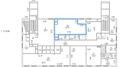 Арендуемые площади с учетом коридорного коэффициента (12%) 1 этаж 70,3 кв.м.