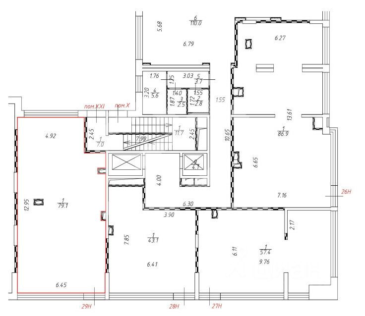 914275 . Предлагаем помещение свободного назначения формата Street Retail, площадью 79,1 кв. м., расположенное на первом этаже жилого дома в ЖК "LIFE-Варшавская".