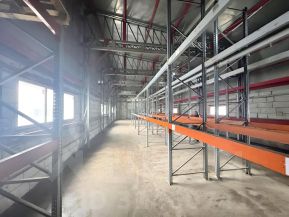 Помещение без внутренних колонн, со стеллажами, возможно демонтировать.