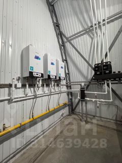 Отопление осуществляется через 3 газовых котла, подключенных каскадным образом, что дает возможность, в случае поломки одного, обогревать помещение дальше.