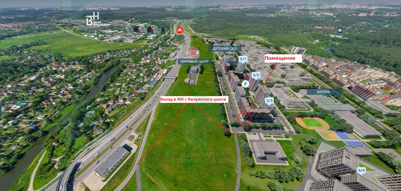 Помещение расположено прямо на въезде в ЖК с Калужского шоссе (строится новая развилка!). Помещение будет отлично работать на уже построенные корпуса, и на новую очередь!