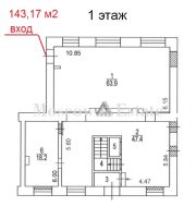 1-й этаж 143,17 м2, минус 1-й 170,4 м2.
