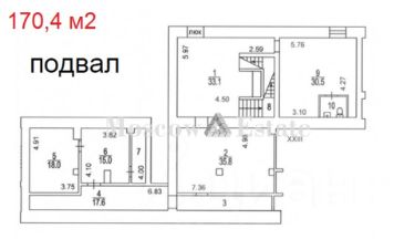 Высота потолков: 1-й эт. 4,77 м., подвал 2,5 м.