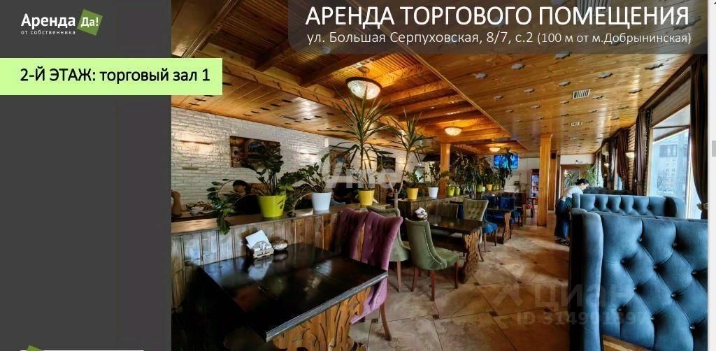 Вход с первой линии ул. Большая Серпуховская. • Место под вывеску на фасаде над входом. • Большие витринные окна на 2-м этаже. • Место под рекламный баннер на 1-м этаже при входе в помещение. Зона погрузки. Мощность 130кВт.