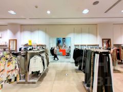 В ТЦ магазины одежды с разными брендами.