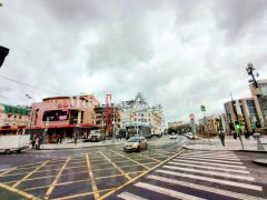 Мега интенсивный пешеходный трафик, несколько выходов из метро и пешеходный переход.