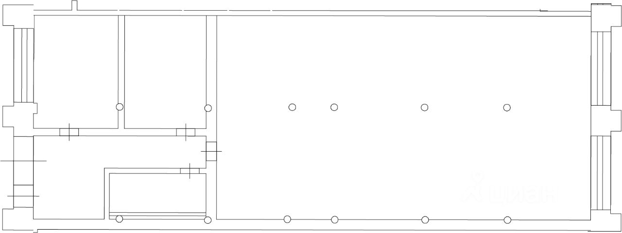 Помещение с высокими потолками и витринными окнами с отделкой.