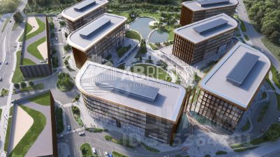 Здание БЦ Сколково Парк в стиле hi-tech состоит из 6 корпусов.