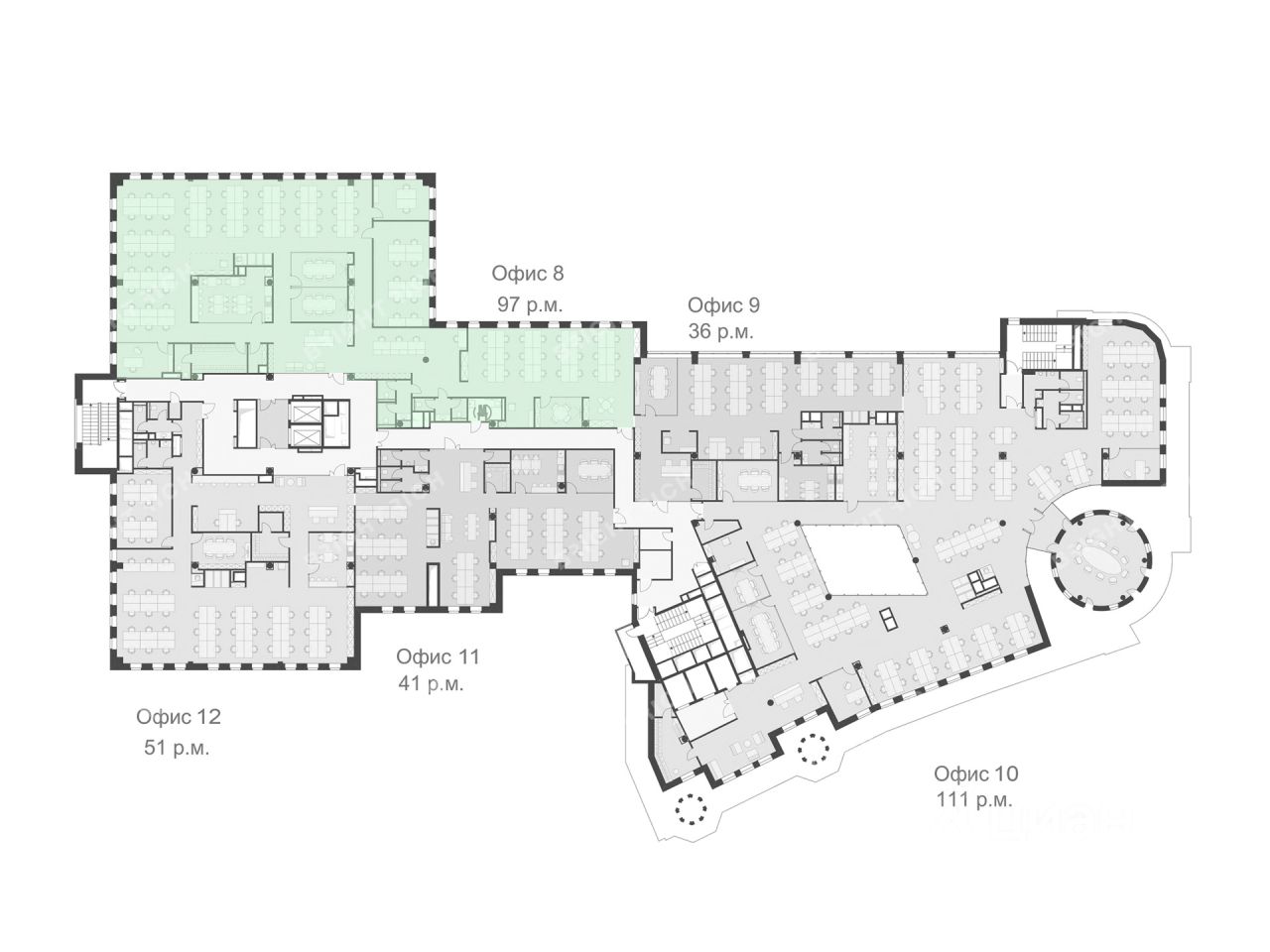 Офисное помещение 582 кв. м в бизнес-центре Midland Plaza. Объект скоро освободится. Успейте забронировать на выгодных условиях. Готовность ко въезду уточняется по запросу.
