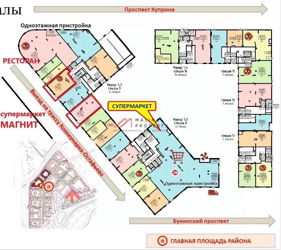 Аренда торгового помещения 73 м2 в ЖК "Бунинские кварталы", проспект Куприна, корпус 5.3 (10 минут транспортом от метро Потапово/Коммунарка. Расстояние составляет 1,7 км (15-20 минут пешком). 1 линия домов.